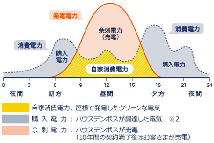 日射量が少ない季節や夜間の利用が多い家庭でも、変わらずお得を感じていただけます。 |