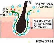 身体中の毛穴に入り込んだ超微細な気泡がほどよく刺激し身体の芯から温まります。 |