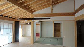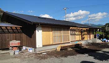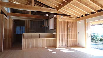 『施主さん所有の山の木を天然乾燥させて、地元の製材所で製材し、、、、 加工も地元で行なっています。 まさしく「地産地消」の家づくりです。』