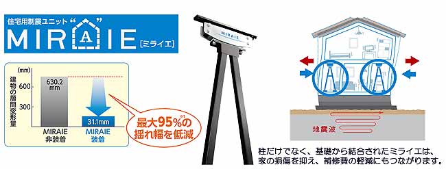 耐震等級3(最高等級)に制震ユニット「MIRAIE」をプラスして、大地震の本震だけでなく繰返しやって来る余震からも大切な家と家族を守ってくれます。