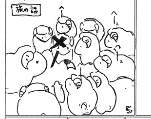 第1話の最後のコマを載せました。旅に出るところです。まだ4足歩行だったのですね(笑)故郷の山はおんなじですね。