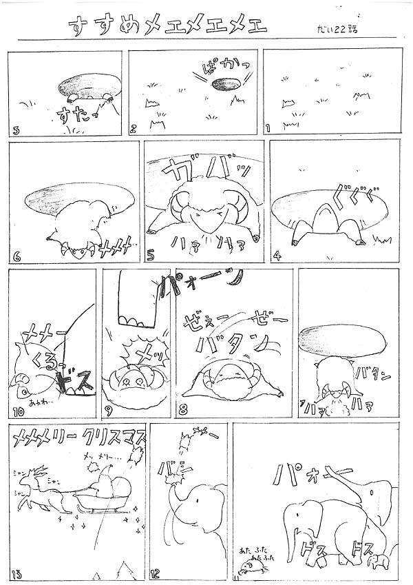 『1ヶ月以上さまよっていた異次元の国から出てきたら、そこは、”サンタの世界?!”』 でもなぜゾウが・・・?そこは深く考えないで。穴から出てくる時のメエメエメエを描くのはけっこう大変でした(^_^;)』 by りゅうげん