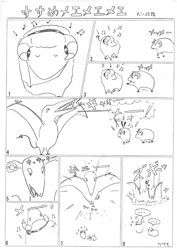 「出た~!!これはまさしく空飛ぶ恐竜『デプラノド・・・違う違う、プテラノドン』ですよね?(”NO.7”にまたしてもいるいる!ウサギの「おはぎ」が♪) 恐竜図鑑によりますと『プテラノドンとは”翼があって歯がない”という意味のギリシャ語だそうで、餌は魚・・・わあっ!歯あるし、肉好きだし・・・深く追求するのはやめておこっと(^_^;)