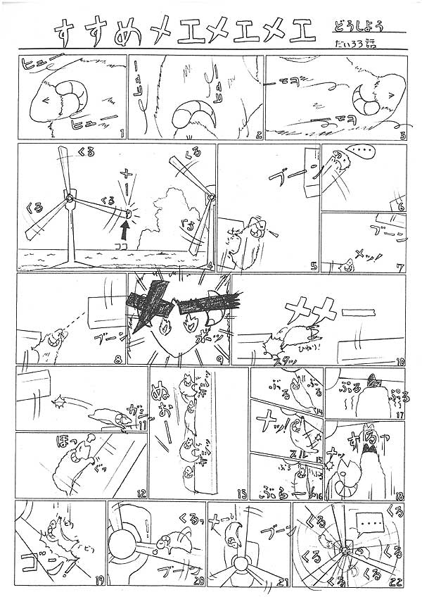 「うん!そうだよ、どうでもい・・・うそ、うそ、う~ん、困りましたねえ~どうしましょう?(^_^;)。って、何か「お母さんといっしょ」の世界になってますよ~♪ 今回はこま割がすごい細かい!、何と22コマもあります。めえめえめえ、わざ使うなあ!ひねり!なんかいれちゃって飛び移ってますよ~。それにしても、この時期なので、回ってる羽根見てると・・・せんせ!寒い!(ーー;) 」 by小川