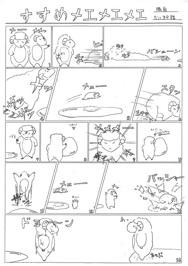 「久々の「イナズマ君」登場♪やはり6月ですので雨ネタできましたね、せんせ。最初のほぼやる気無しメエメエメエの雰囲気よく出てますよ。この季節の変わり目は私もほぼこんな感じですから(汗) きゃははは~イナズマ君のVサイン受けるんですけど~そういえば、メエメエメエもイナズマ君もVサインしてなくてもいつもVサインでしたね。」 by小川