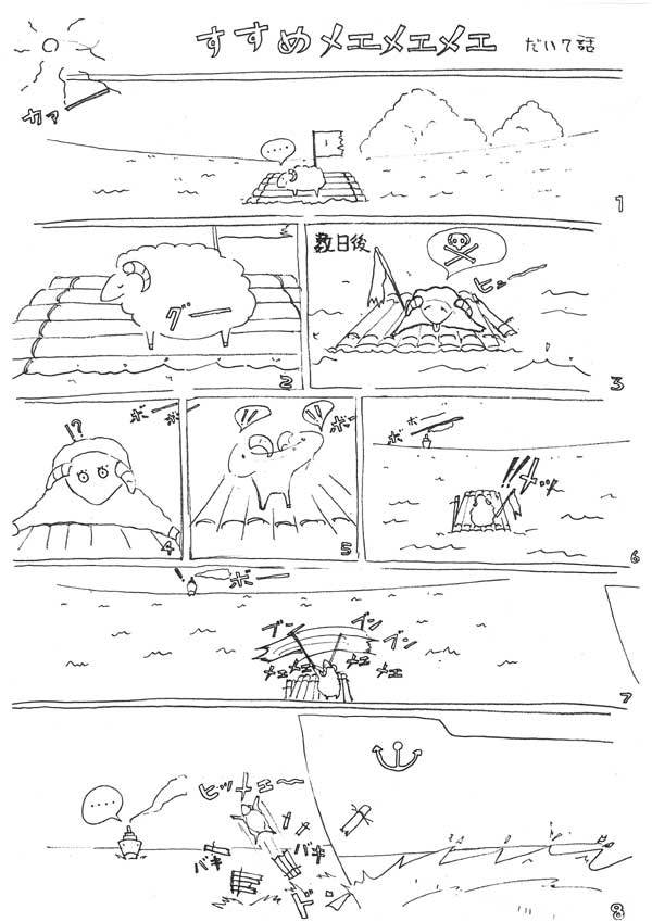 おりょりょ!!なんだか、今月の「すすめ、メエメエメエ 7話」、新たな展開になってきましたよ~!漂流中のメエメエメエ、いったいどこへたどり着くのでしょうか?りゅうげん先生!この7話、お・も・し・ろ・い です~(^O^)・・・いや、今までのが面白くなかったという事ではなくて(^^;)