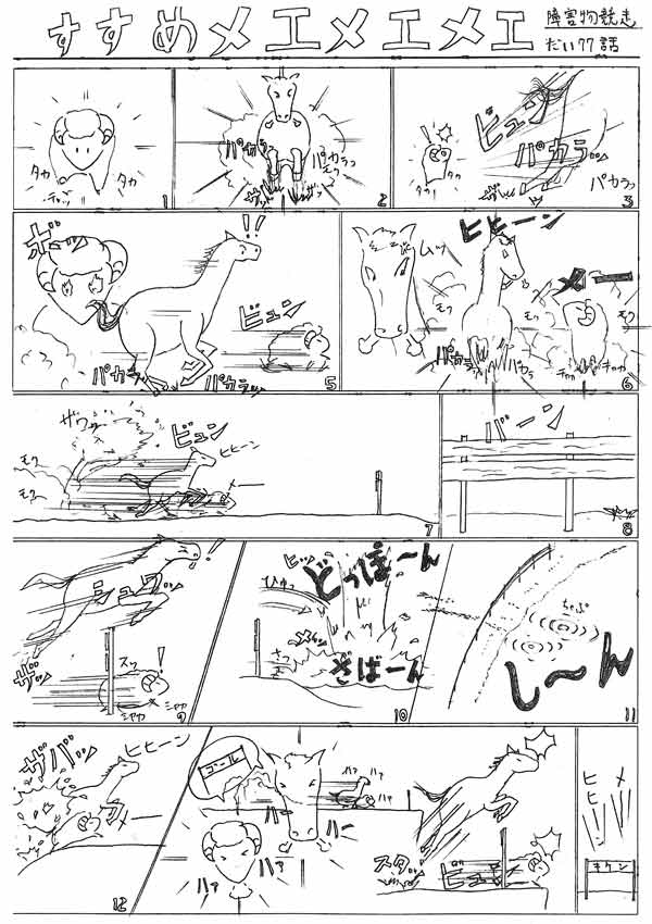 「ぱっと見たときに、一瞬「えっ、ひつじ年?うま年?干支ネタ?」と思ってしまいましたよ~(笑)メエメエメエ、抜かれるとすぐ闘争心に火が点いちゃうから。それにしても先生!!今月号は、躍動感が半端ないですね~いいですよ♪まさにスポーツの秋って感じ。”メ~!どっぼーん!ざばーん!ざばーん””ビュン!バーン”というお決まりの擬音も半端ないですが(笑)そういえば、私はハードル競技が大の苦手で、毎回ほとんどのハードル倒して走ってました((+_+))」 by小川