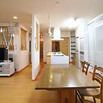 17年前にハウスメーカーで建てた2世帯住宅の2階若世帯部分をリフォームしました。壁で閉ざされていた子供部屋、キッチンがリビングダイニングと一体となり、1つの空間になりました。構造的に外せない柱やブレース(木造の筋かいと同じ)も木の格子でうまくデザインして、お洒落になりました。オープンで一体となった空間もペレットストーブで暖まっています。 |