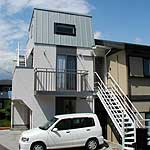両親の住む実家敷地内に「新築離れ」と母屋リフォームを実施しました。1階部分に2台並列ビルトインガレージを設け、小屋裏や屋上スペースを有効に利用したSE構法だからこそ叶だった二世帯リハウスです。新築部分と母屋2階を生活しやすく継ぎ合わせた技あり設計です。 |