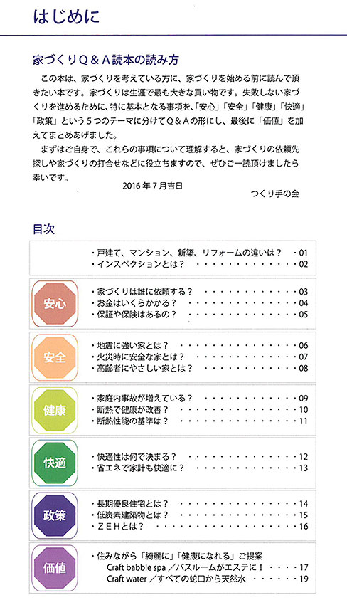 ※つくり手の会小冊子第5弾を発行いたしました!「快適・健康と省エネを両立させる家づくり15の話-パッシブデザインされた家を作ろう-」をさらにバージョンアップして最新の情報を掲載、内容も充実させた改訂版です。