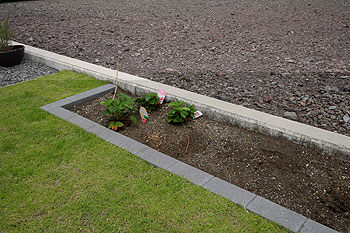 | 庭の一画に「家庭菜園」のコーナーを作ってもらいましたが、まだちょっと・・・(汗) 秋冬野菜にチャレンジ! |