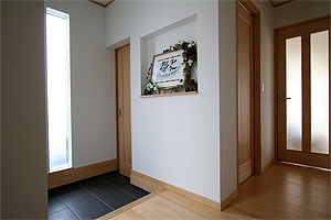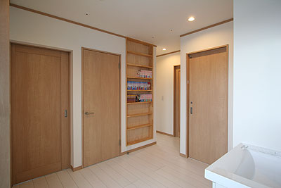 | 2階ホールには壁に埋込のコミック棚を作ってもらいました。まだ十分余裕がありますが、これからどんどん増えると思います。 |