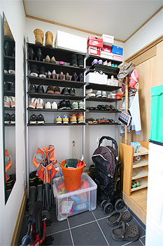 | 屋根のついたベランダはとっても便利。産休が明けて勤めに復帰すると洗濯物を干しっぱなしで出かけることもあるので、お願いしました。 |