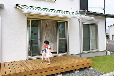 | 南面は大きな窓がいっぱいありますが、軒・庇・オーニングを付けてくれたので、夏に日差しをシャットアウトできています。 |