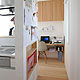 アイランド型キッチンの裏にはマグネット可能なパネルとマガジンラック。リビングには造作カウンターでパソコンコーナー。 |