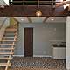 ”蓄熱式温水敷床暖房とコルクタイル” 犬が走り回れるタイルの土間”シンボルツリー” |