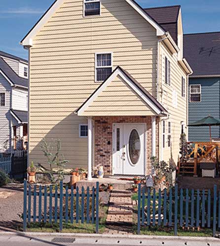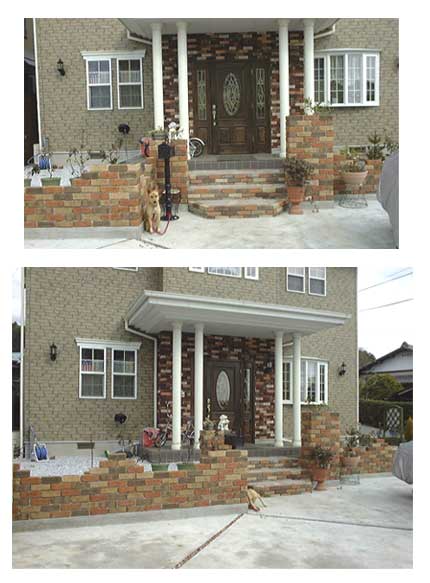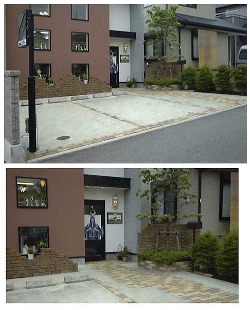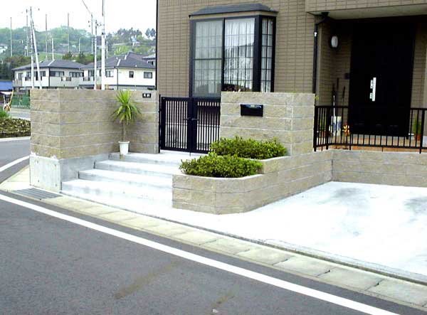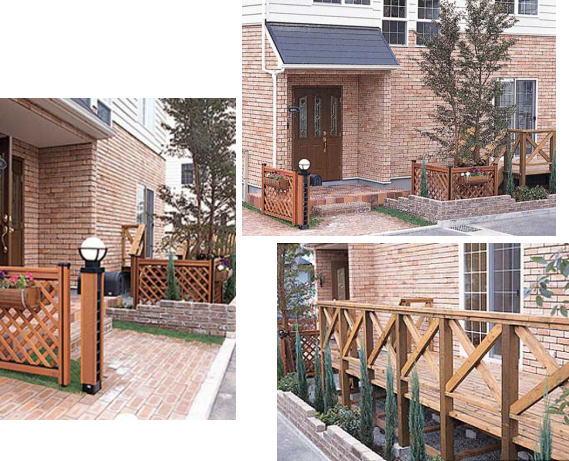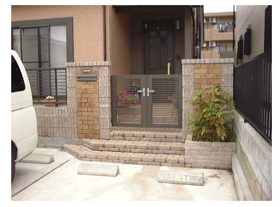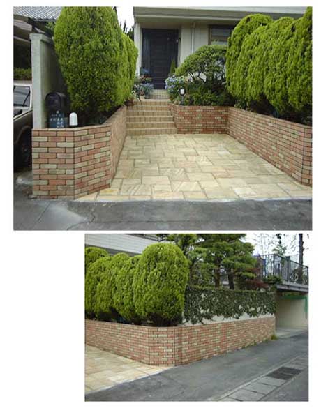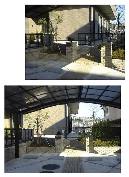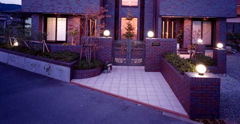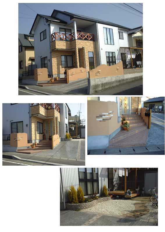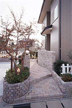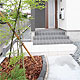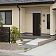 シンボルツリーを植え、玄関へのアプローチには、スロープと階段を設けて、車イス対応としました。