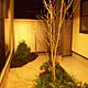 玄関を入ると目の前に中庭が見え空間の広がりを感じるとともに木々に癒され,四季を感じることができます。夜にはライトアップされ贅沢な空間となります。