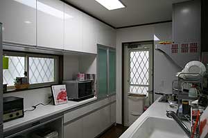 | 背面収納も充実したこだわりのキッチンセットです。ご夫婦で仲良く料理を楽しむことも・・・。 |