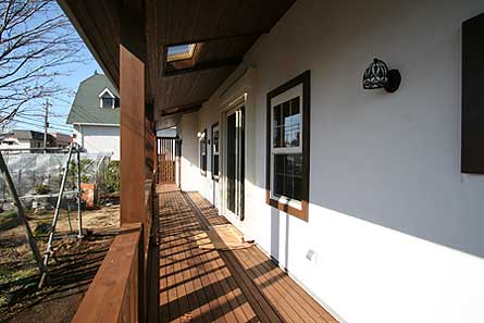 広々としたウッドデッキはリビングと庭を繋ぐ快適スペースです。