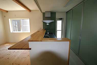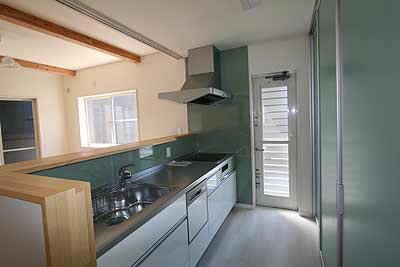 キッチン背面は、雑多なものを入れても来客時にはパーテーションスクリーンで仕切ることができます。
