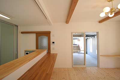 ダイニングからガレージ内の車を眺められます。また、ガレージでご主人が作業中でも家族の一体感が生まれます。