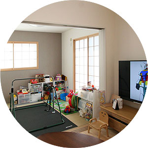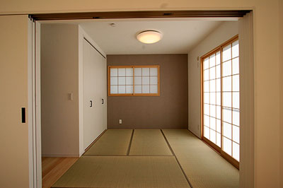 LDKの続き間で4.5帖の和室です。子供が成長するまでは遊び場として使い、将来は客間になる予定です。