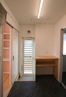 | 洗濯室に勝手口を付けて、物干し場の外のテラスへ出入りできます。 |