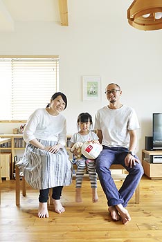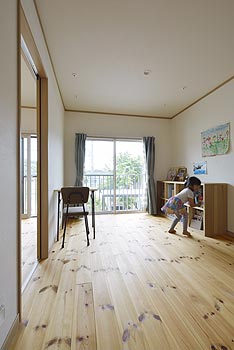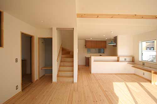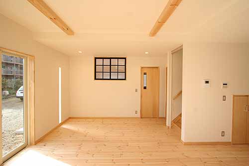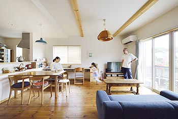 | パイン無垢フロアと化粧梁で温かみのあるリビング空間を演出します。 |