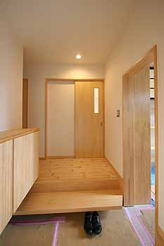 | 母屋と行き来しやすいように西面に配置した玄関です。 |