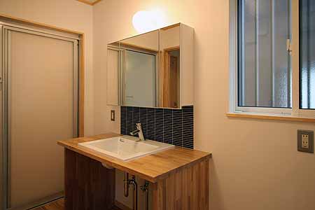 | 洗面コーナーは造作カウンター式をチョイスしました。 |