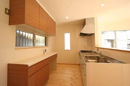 | ダイニングスペースのカウンター収納は、パソコンや勉強をする特別な場所です。 |
