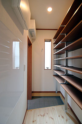 家族の靴をたっぷり収納できるシューズクローク。