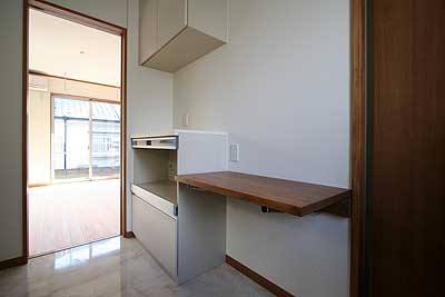キッチンのカウンターは折りたたみ式で、