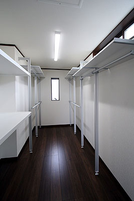 主寝室はベッドを置くだけですっきりさせ、衣類や布団などは隣接する4帖のウォーキングクローゼットに収納します。