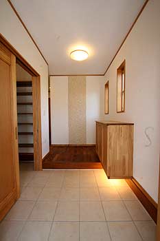 また、建設業に従事する施主様がプロの目で選び、私達建築工房わたなべと一緒に造り上げたものです。通風や日射を考えたパッシブデザインに加え、5.5kwの太陽光発電システムや蓄熱式床下暖房といった高性能設備を用いる事により、大幅に生活エネルギーを削減しながら快適な生活がおくられる建物です。