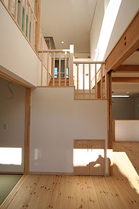 吹き抜けを通して1階のリビングとも会話を楽しむ事も出来ます。