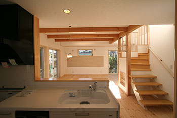 階段を絡めた吹き抜けから光を取り入れたLDKは、明るく広々とした空間に仕上がりました。