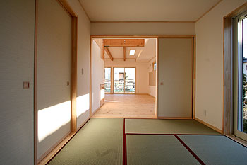 高気密・高断熱のオール電化住宅です。珪藻土の塗り壁やパイン無垢材を使用した床板と建具など、自然素材にもこだわりました。四季を通して気持ちよく暮らす、環境に優しいエコ住宅です。