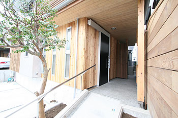 高齢な御両親のことを考えアプローチはスロープにしました。