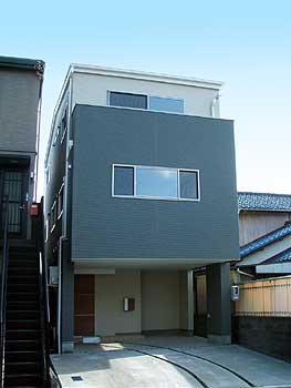 限られた敷地を最大限に活用するために、1階の約半分をピロティにしてガレージとして使用した3階建住宅です。