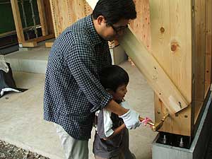 上棟時には、施主様に「ドリフトピン」を打ち込んでいただきました。