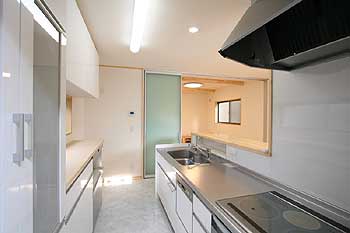 対面式のキッチンからはダイニングだけでなくリビングまで見渡せます。