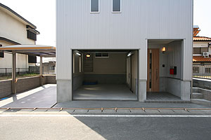 北側道路の敷地にビルトインガレージ付の庭を建てたい、そんな施主様の要望に応えるべく設計した建物です。SE構法ならではの開口の広いガレージと、余分な柱を立てずに大空間を実現した2階リビングが設計ポイントです。