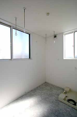 | ランドリールーム。洗濯物はこちらに干します。日当たり、風通しも良く、湿度センサー付き換気扇もあるので、洗濯物の乾きも問題ありません。 |