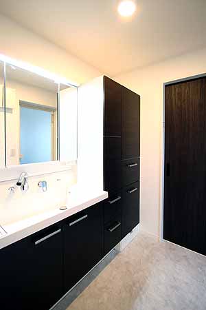 ダークブラウン×白の洗面。