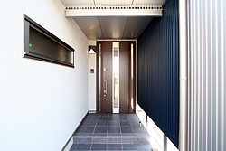 少し奥まった位置にある玄関は雨の日でも大丈夫! |
