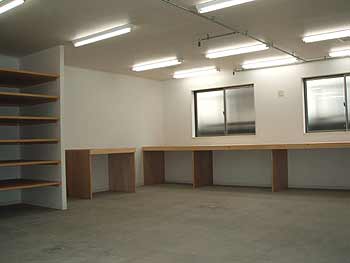 作業室。石膏を作った作業もしますので、コンクリートの床です。