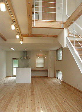 将来、親との同居を考慮に入れ、LDKと和室の配置に気を配り、ミニキッチンを増設できるようになっています。LDKには吹抜けからの明りが広がります。