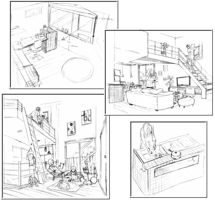 漫画家である奥様が、内部のイメージをイラストにしてくれました。